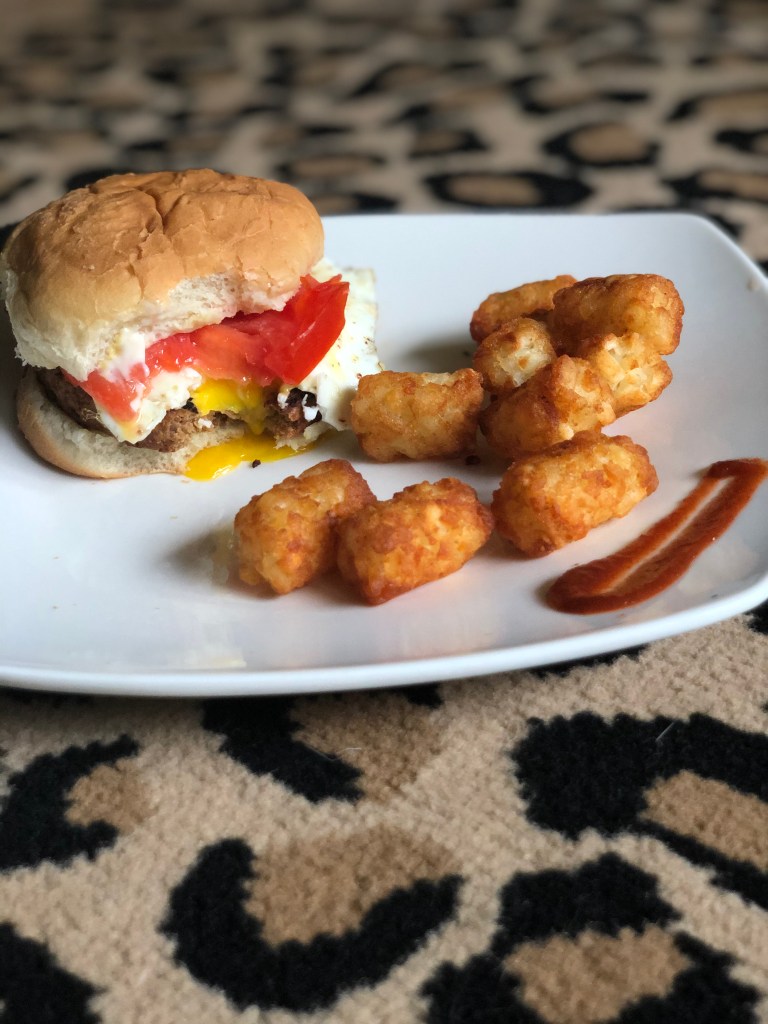 - Plate the tater tots came on the side and with a little sriracha.